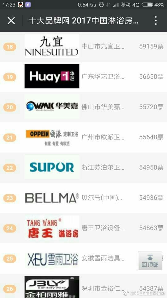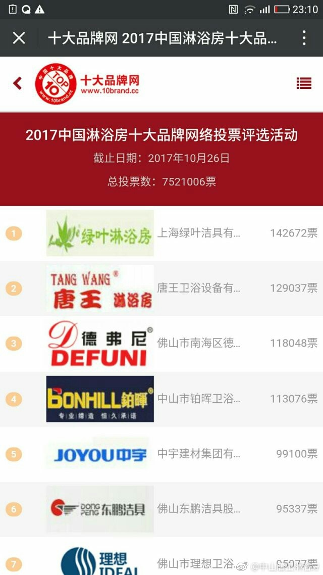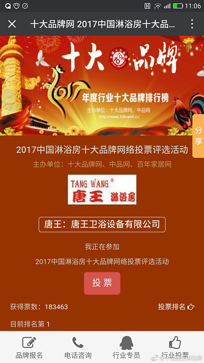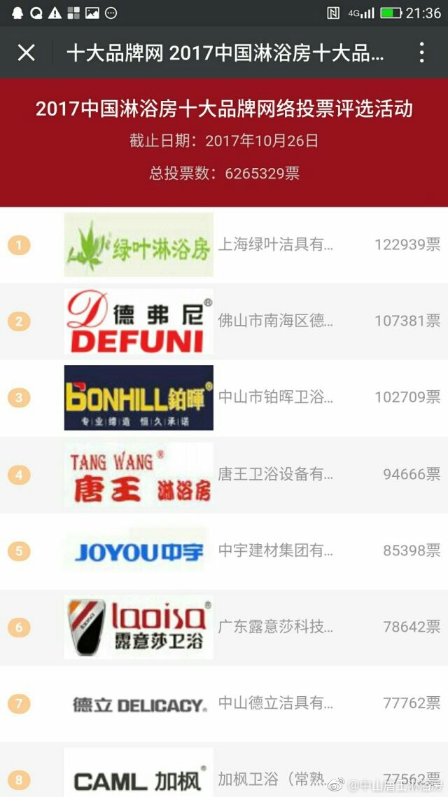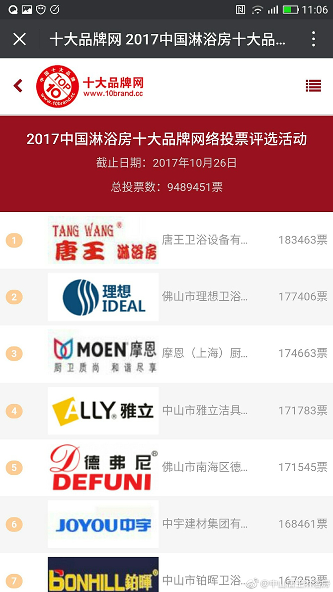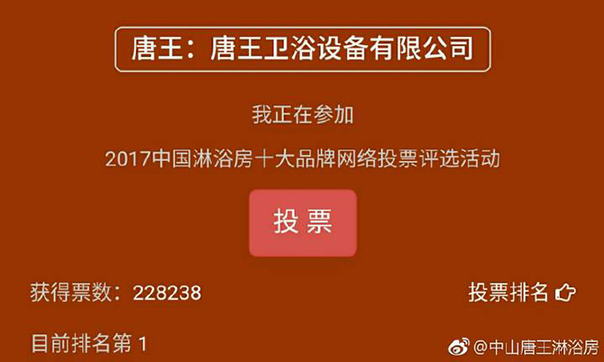 唐王淋浴房网络投票得第一