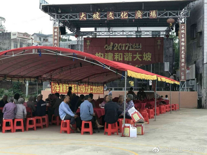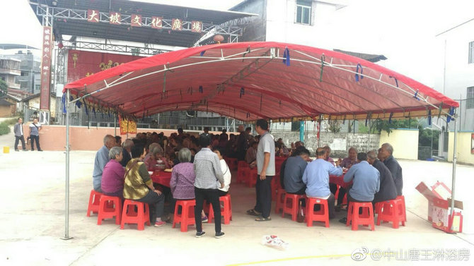 重阳节又到了,作为有优秀遵老爱幼助学传统的丁堡大坡村,刘家文化广场。肯定举行家宴,请老人家欢聚一堂的。