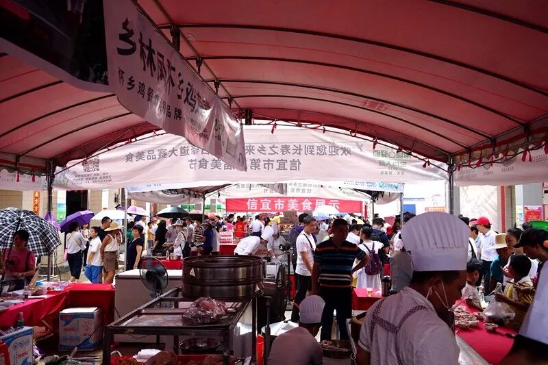 赛事期间,红楼分会场同时举办信宜市第二届美食节,游人和群众尽情品尝信宜特色美食及信宜特产三华李等,还有一百多家农副产品、特产、沉香、玉石的商家参加了展示,感受信宜这个“国家重点生态功能区”、“中国三华李龙头县”的舌尖诱惑。