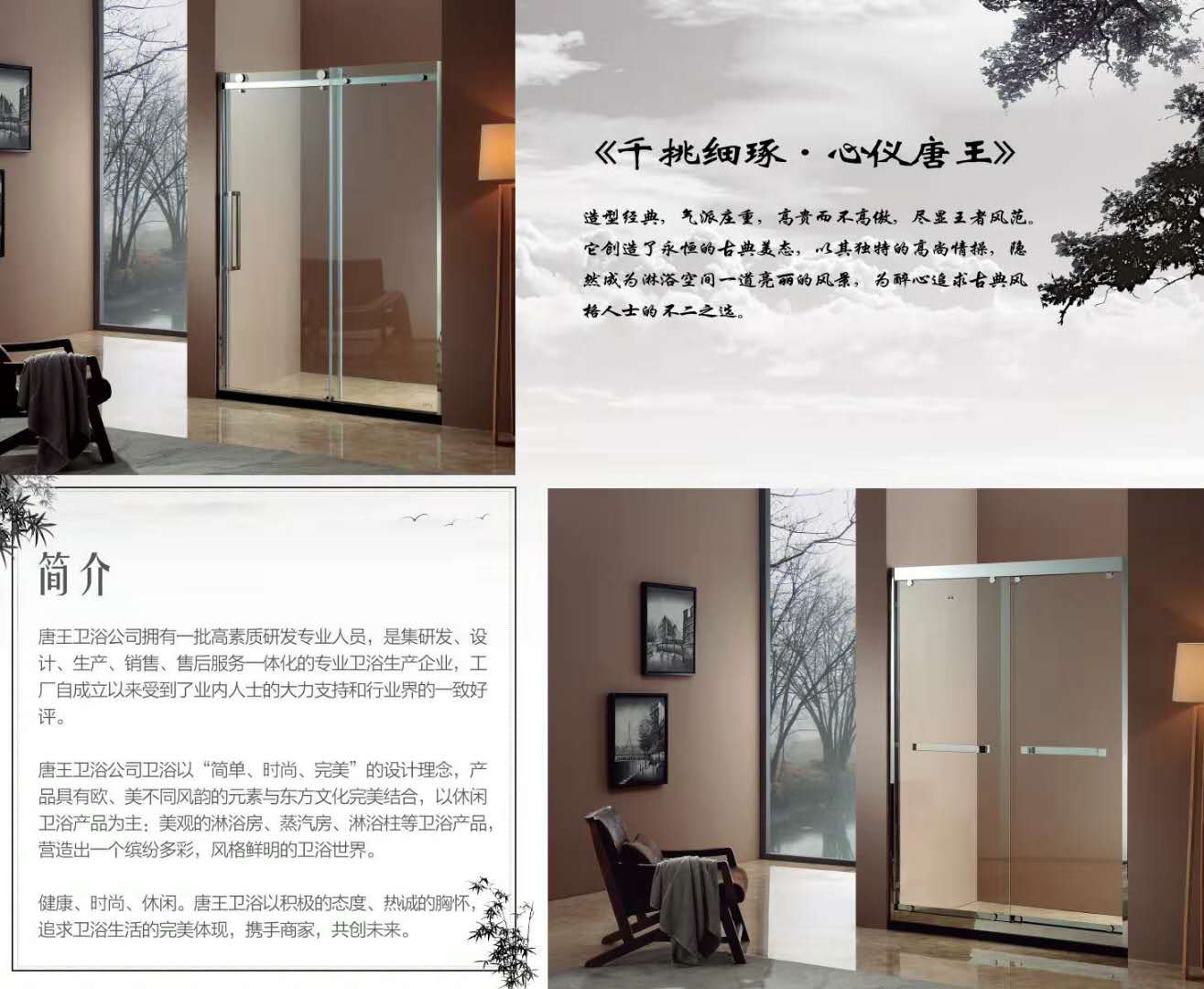 唐王卫浴设备有限公司成立于2008年。本公司专注舒适休闲淋浴房,不锈钢淋浴房。2011年唐王淋浴房荣获淋浴房十大品牌称号,中国淋浴房著名品牌称号。公司经历了九年淋浴房品牌经营发展。根植于两广,以专业的技术与人性的服务深得用户的信赖,铸造了卫浴品牌。 本公司是以设计、生产、销售、售后服务为一体的专业卫浴公司,产品有仿古浴室柜,高档不锈钢水龙头,进口釉面抽水马桶。2013迁至中山淋浴房基地建厂,以追求更高,更优,更美的高端淋浴房为己任。奉承“中山标准,引领行业”中山淋浴房品质宗旨,坚持“务实、创新、专业”的企业精神,竭力为广大客户提供高质量的产品和优质服务。唐王卫浴产品从产品设计、试样、选材到加工、成品组装,均符合IS09001:2000的质量体系标准。
