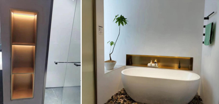 因此,兼具实用性和美观性的不锈钢壁龛设计便成了卫生间收纳的新宠。