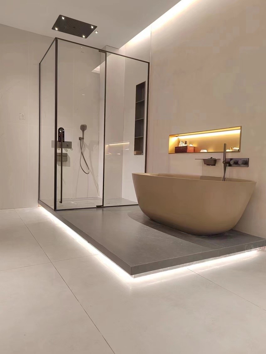 3、如果壁龛设计在卫生间区域,为避免存水过多滋生细菌,需要做斜水坡。