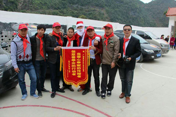 当天的活动由广西装修设计材料联盟及广西建筑装饰联盟QQ群共同组织。两QQ群成员来自与建筑装饰相关的各子行业及相关工种,因为有了前一次活动的经验,这一次一在群里号召,大家就快速响应报名了,短短几天就募集到了善款和物资。于当天早上集结之后就出发板升乡。