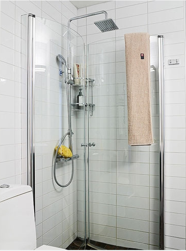 非常适合小户型选用的淋浴房,在纯白无暇的瓷砖撑托下,显得更加的洁白清新。更重要的是它的双开门设计,在不用时往里关,可以让卫生间看起来更宽敞哦。